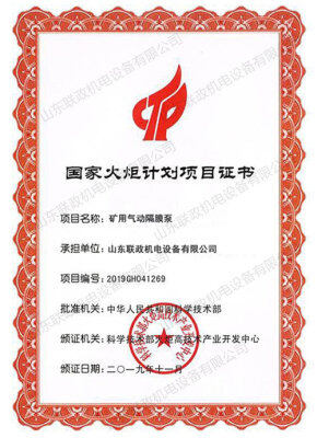 国家火炬计划项目证书
