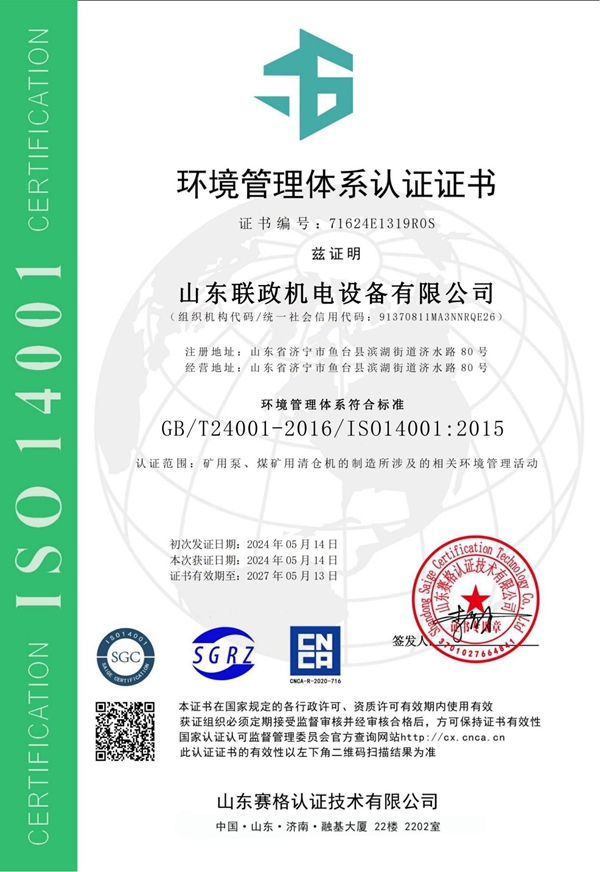 环境管理体系认证证书